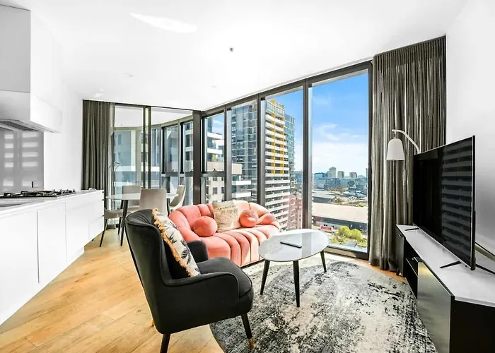 Appartamento Shadow Play - Southbank Sanctuary On 22Nd Floor Melbourne, di 65 m², proporziona prossimità ad attrazioni turistiche come Coles South Melbourne, che si trova a circa 5 minuti a piedi. Situato a 500 m dai Crown Towers Melbourne, l'appartamento offre una piscina per il divertimento degli ospiti.